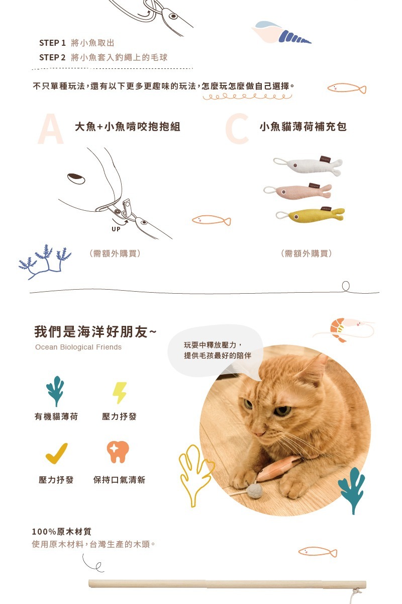 小魚內含台灣認證有機貓薄荷,讓貓咪咬得開心又安心