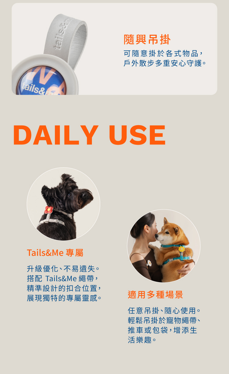 可扣於Tails&Me配件孔上,快速配戴,時刻保護。