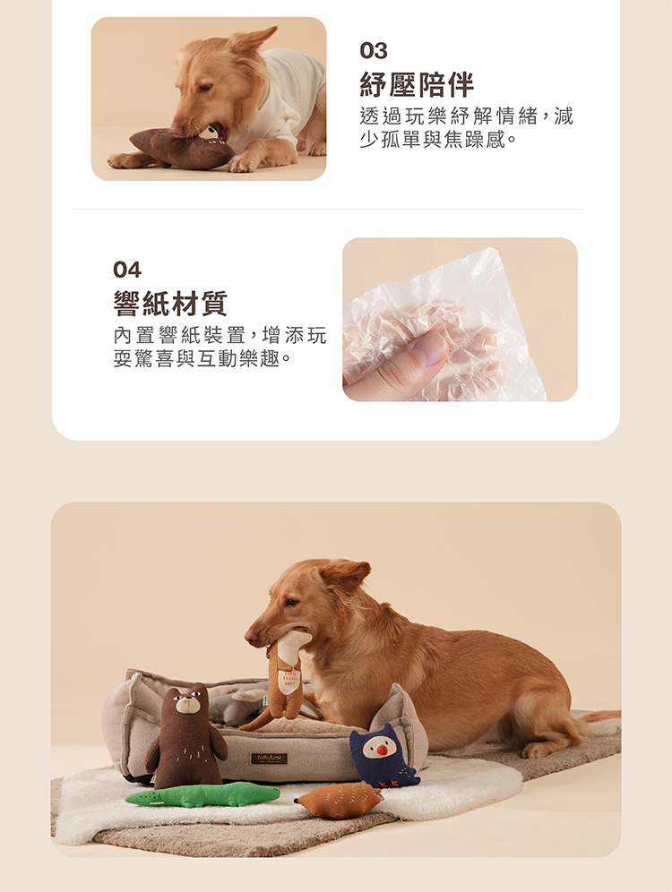 互動有趣 — 內置響紙設計,吸引貓狗注意力
